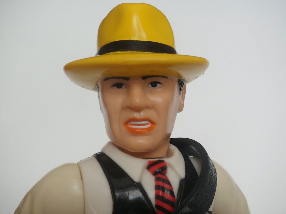 Playmates were still fairly new on the block when they released these Dick Tracy figures and as such felt the need to keep these figures in line with what they had already produced, namely the iconic TMNT series, which explains why the figures appear dwarfish in stature with large heads and in squat positions! but like those earlier Ninja Turtles figures DT features some nice detailing bright colour schemes and bold expressions that perfectly show off some of the great character make up designs from the movie. Tracy here is more "normal" looking perhaps than the others yet doesn't quite look the spit of Warren Beatty who played him in the movie still it is recognisably DT even if the figure isn't supplied with the iconic yellow trench coat!